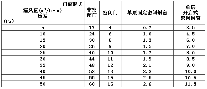 表7 圍護結(jié)構(gòu)單位長度縫隙的滲漏風(fēng)量