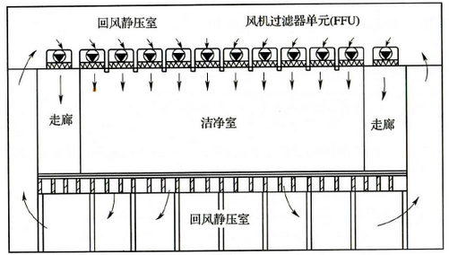 圖2 風(fēng)機過濾器單元送風(fēng)方式(FFU)示意圖