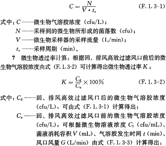4 采樣:對于回、排風(fēng)高效過濾風(fēng)口,可在其后的出風(fēng)管道中采樣,離排風(fēng)高效過濾風(fēng)門的距離根據(jù)實(shí)際工程而定,原則上出風(fēng)后有所混合,能近則好,采樣點(diǎn)沿風(fēng)管寬度方向均勻布置3點(diǎn)。采樣周期、采樣次數(shù)按預(yù)先制定的評價方案執(zhí)行。采樣過程中,不能中斷微生物氣溶膠的發(fā)生,采樣結(jié)束后才能停止發(fā)生微生物氣溶膠,此后噴霧器中必須尚存不少于一半的微生物溶液,且需對剩余菌液活性進(jìn)行涂布法驗(yàn)證,以修正菌液濃度。